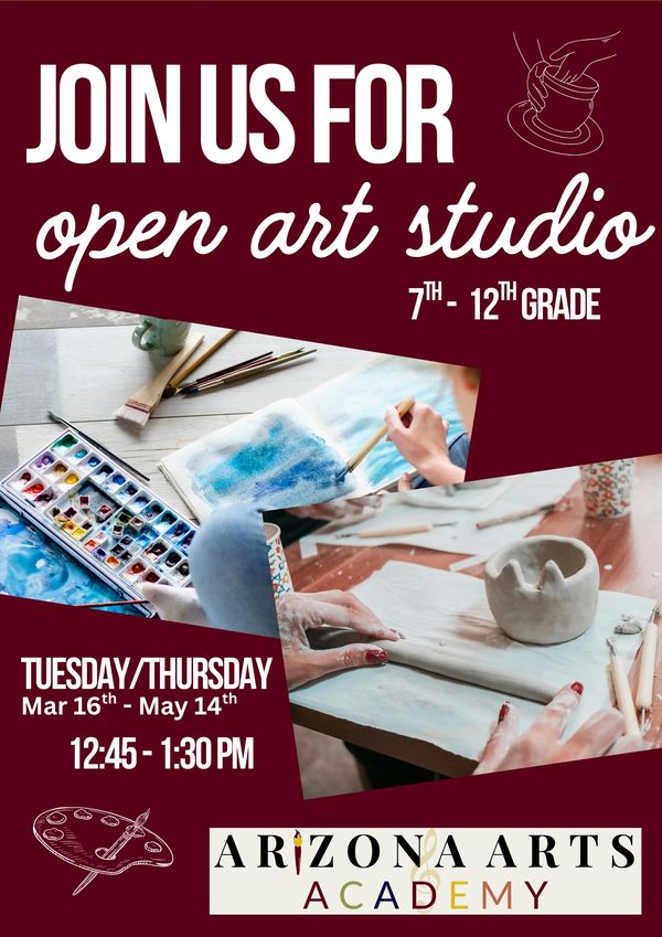 Let your imagination run wild! Our Open Art Studio gives students a hands-on, flexible space to explore watercolor, oil painting, sketching, clay, wood whittling, mixed media, and more.